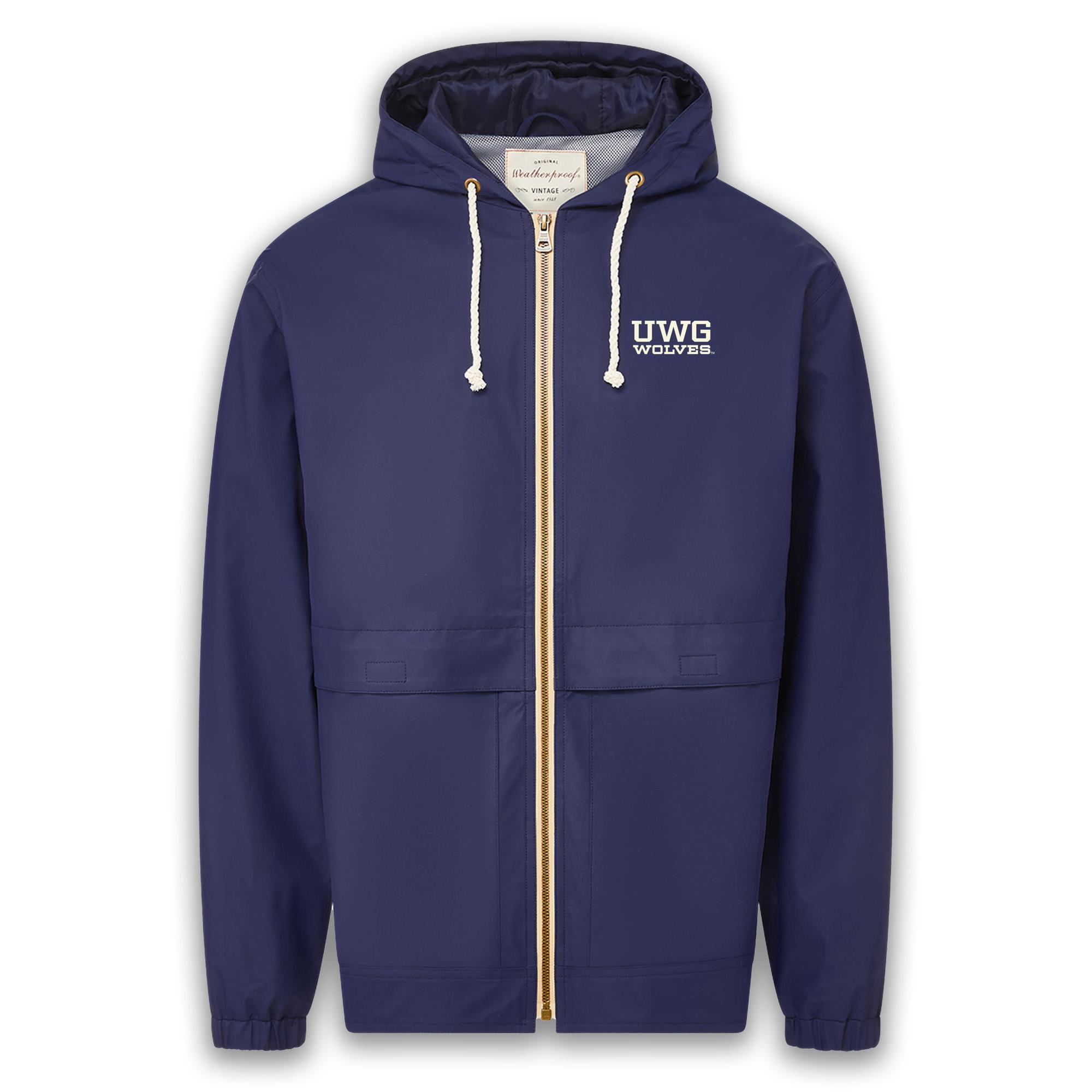 The UWG Wolves Weatherproof Vintage Hooded Rain Jacket is made from durable, water-resistant fabric with a relaxed unisex fit. Featuring an adjustable hood, zip-front closure, and side pockets, it keeps you dry while showing bold royal blue and white Wolves graphics with a classic vintage finish. Lightweight and practical, this jacket is ideal for rainy game days, campus walks, or outdoor adventures while showcasing unwavering UWG pride.